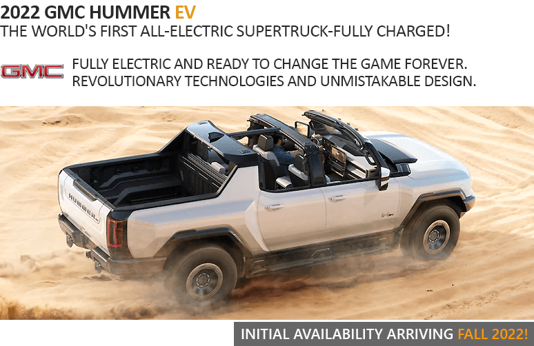 Introducing the 2022 HUMMER EV — a first-of-its kind super truck developed to forge new paths with zero emissions and revolutionary street performance from a truck, enabled by extraordinary next-gen EV power. Head-turning looks and an unmistakable stance. The GMC HUMMER EV experience will put drivers in the middle of every moment. The GMC HUMMER EV is designed to be the ultimate off-road EV super truck, with all-new features developed to challenge tough obstacles or terrain.
