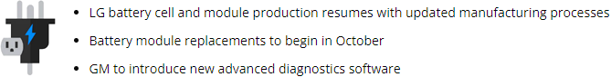 “We’re grateful for the patience of owners and dealers as we work to advance solutions to this recall,” said Doug Parks, GM executive vice president, Global Product Development, Purchasing and Supply Chain. “Resuming battery module production is the first step and we’ll continue to work aggressively with LG to obtain additional battery supply. In addition, we’re optimistic a new advanced diagnostic software will provide more convenience for our customers.”